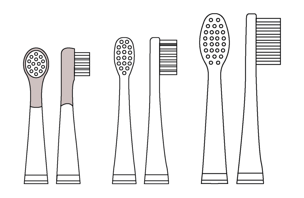 De opzetborstels zijn zijn er in verschillende maten, elke kop is anders ontwikkeld voor de specifieke leeftijdsgroep.