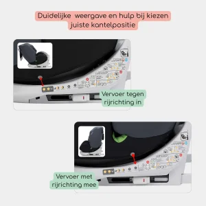 Uiteraard staat duidelijk op de autostoel aangegeven in welke positie je het stoeltje moet kantelen wanneer je kindje een bepaalde lengte heeft.